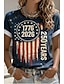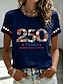 Dia da Independência Americana Mulheres Camiseta Imprimir Gráfico Bandeira Letra Vintage Moda à moda Manga Curta Gola Redonda Decote Redondo Tops longos Casual Diário Final de semana Azul Branco