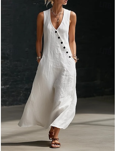 Mulheres Vestido Longo Vestidos Para o Verão vestido de praia Vestido de decote Elegante Moda Moderno Ao ar livre Férias Para Noite Normal Tecido Sem Manga Com Alças Finas Azul Preto Branco Amarelo