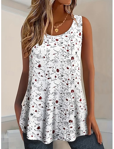 Mulheres Malha Íntima camisa sem manga T-shirt Gráfico Plantas Moda à moda Clássico Sem Manga Gola Redonda Decote V Decote Redondo Tops regulares Tops longos Diário Para Noite Final de semana Branco