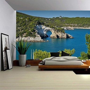 Tapeçaria Suspensa Vista do Oceano Paisagem Arte de Parede Grande Tapeçaria Mural Decoração Fotografia Fundo Cobertor Cortina Decoração para Quarto de Casa Sala de Estar
