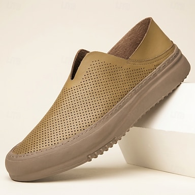 Mocassins masculinos casuais bege perfurados, leves e respiráveis, confortáveis para uso diário, viagens, dirigir, escritório e lazer de verão.