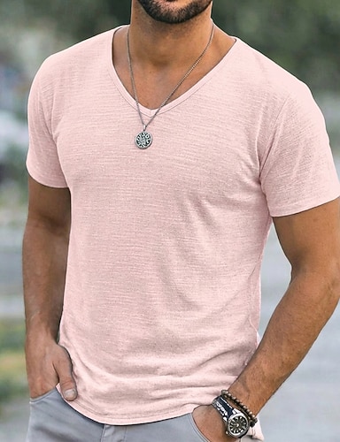 Homens Camiseta Camisa de manga curta T-shirt Camiseta de linho Manga Curta Decote V Verão Primavera Côr Sólida Tecido Pit Strip Roupa de rua à moda Casual Puro Casual Diário Ao ar livre Azul Preto