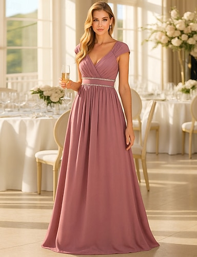 Vestido de baile longo até o chão em forma de A vestido de festa vestido de coquetel vestido de convidada de casamento vestido para mãe da noiva vestido com mangas curtas ombro a ombro elegante