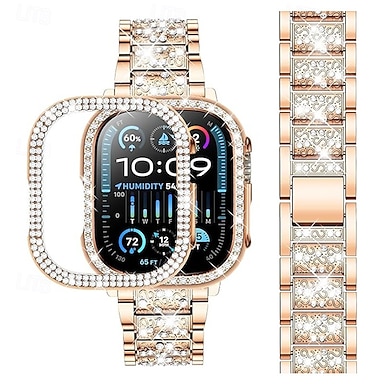 Pulseira Esportiva Fecho Moderno Pulseira de joias Compatível com Pulseira Apple Watch 38mm 40mm 41mm 42mm 44mm 45mm 49mm Feminino Purpurina Bling Diamond Aço Inoxidável pulseira de substituição para