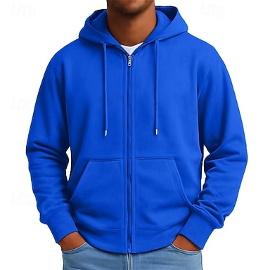 Homens Moletom Full Zip Hoodie Azul Preto Cinzento Com Capuz Tecido Zip Up Casual Diário Desportos e Ar livre Vintage Legal Roupa de Esporte Primavera & Outono Roupa Moletons Moletons Manga Longa