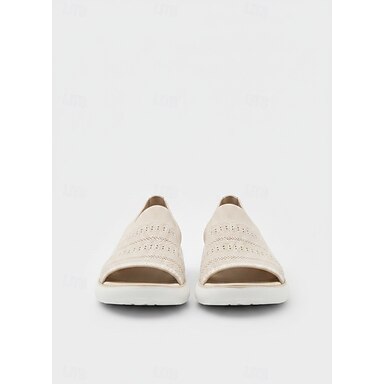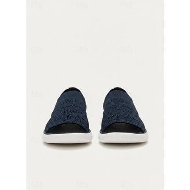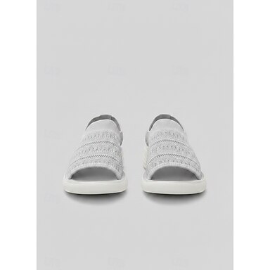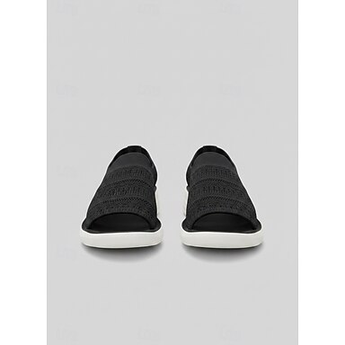 Mulheres Casual Diário Caminhada Plataforma Salto Plataforma Dedo Aberto Esportivo Casual Minimalismo Tecelagem voadora Sem Atacadores Preto Branco
