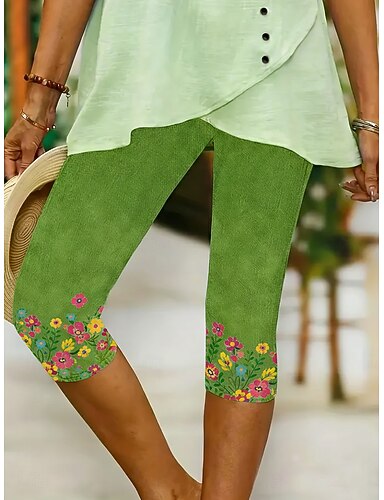 Mulheres Leggings Férias Vintage Moda Capris Cintura Alta Floral Gráfico Estampado Conforto Macio Respirável Com Stretch Casual Diário Ao ar livre Azul Verde Verão Primavera Fino