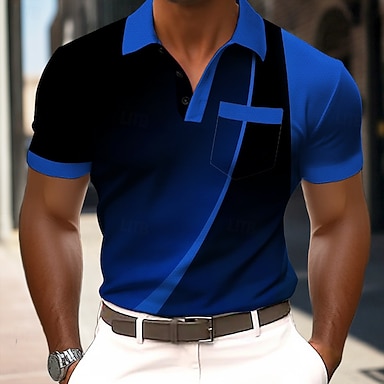 Homens Geométrico Linha Pólo Manga Curta Camisas polo Camisas de colarinho Business casual Ao ar livre Roupa Esportiva Roupa Diária Bolsos Impressão 3D Botões Verão Azul Rosa Dourado