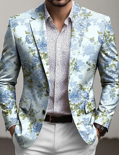 Homens Estampa floral Jaqueta Blazer Casaco Da Moda Confortável Respirável Artistíco Casual Diário Formal Traje de festa para noite Impressão 3D Botões Bolso multi Primavera Outono & inverno Entalhe