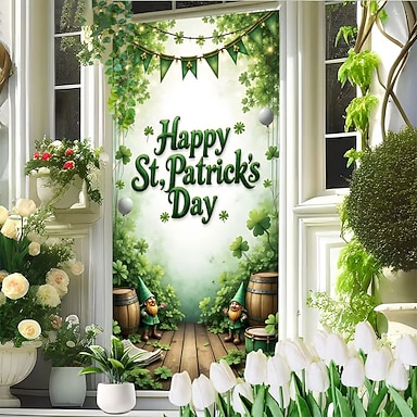 Dia de São Patrício Pôsteres Tampa da porta Banners externos Trevo Estilo bonito 3D De Festa Dorm Sala de Adolescentes Dormitório da faculdade Quarto de fraternidade da caverna masculina Fundos de