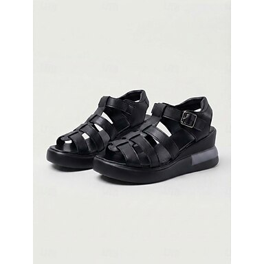 Sandálias gladiadoras pretas de plataforma para mulheres – estilo romano com tira ajustável, solado plataforma leve, calçado confortável para o verão, ideal para caminhadas e viagens. &uso diário