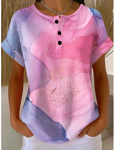 Mulheres Tops tricotados texturizados Camiseta Bloco de cor Âmbar Gráfico Abstrato à moda Clássico Manga Curta Decote Redondo Henley Tops longos Diário Esportes Azul Vermelho Roxo Verão Primavera