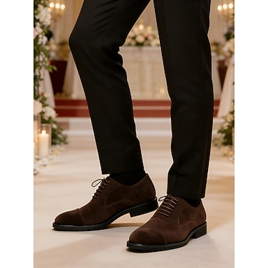 sapatos oxford masculinos de camurça marrom – sapatos sociais clássicos com cadarço para ocasiões formais e de negócios, calçados confortáveis e elegantes