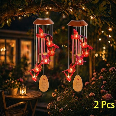 Conjunto de 2 sinos de vento solares à prova d'água em formato de pássaro vermelho, luminárias decorativas de LED para jardim, quintal, varanda, sacada e casa de campo – perfeitos para festas,