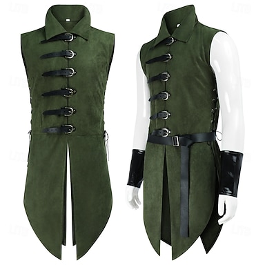 Retro Vintage Medieval Renascentista Armas e Armaduras Colete Elfo Viking Ranger Fantasia Homens Fantasia Dia Das Bruxas Carnaval Espetáculo LARP Ren Faire Adulto Colete Cinto De Pulso