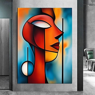 Pintura a óleo feita à mão de uma linda dama cubista africana em tela, arte tribal colorida, decoração étnica para interiores, arte tradicional contemporânea, pintura cubista de uma mulher americana
