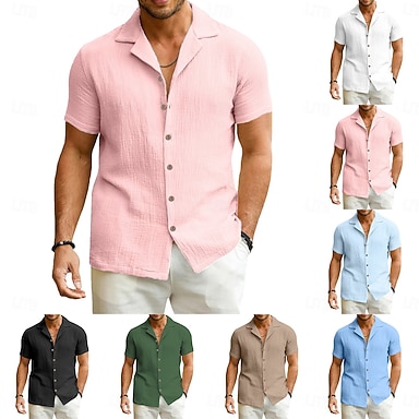 Homens Camisa Social camisa de verão Camisa casual camisa de praia camisa de botão Preto Branco Rosa Azul Verde Manga Curta Tecido Colar de acampamento Férias Havaiana Roupa Poliéster Moda Casual