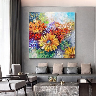 Pintura a óleo pintada à mão pintada à mão, pintura de parede de flores coloridas, decoração de casa, tela rolada, sem moldura, não esticada