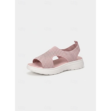 Sandálias esportivas femininas de tricô rosa com strass – calçados de plataforma respiráveis para o verão, ideais para caminhadas, viagens e férias. &roupa casual