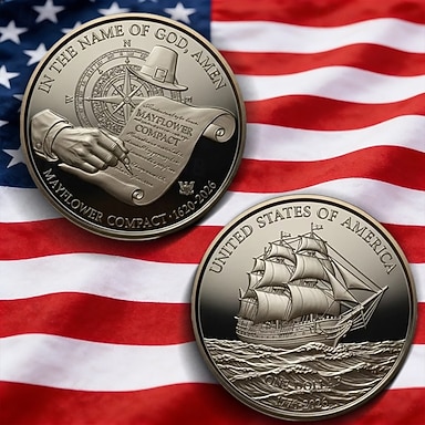 Moeda comemorativa do 250º aniversário dos EUA, moeda de desafio do Pacto de Mayflower 1620–2016, navio peregrino &Design de documento histórico, lembrança colecionável patriótica em metal durável