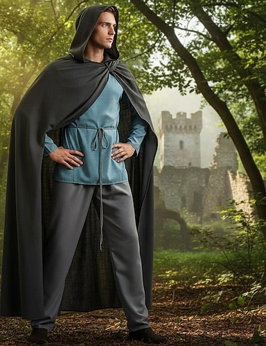 Punk e gótico Medieval século 18 Traje Cosplay Capa Larga Feiticeiro Viking Ranger Elfo Cor Sólida Fantasia Homens Fantasia Dia Das Bruxas Carnaval Baile de Máscaras dia das Bruxas Palco Mascarilha