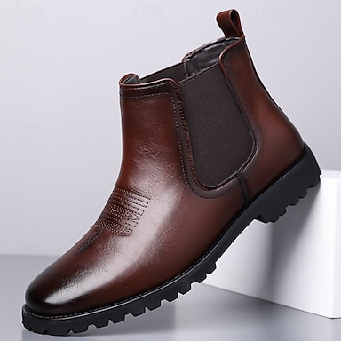 Botas Chelsea masculinas em couro sintético marrom – estilosas e elegantes, perfeitas para ocasiões formais, negócios e uso diário.