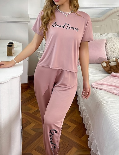 Mulheres Pijamas Loungewear Flanela Quente Moda Gráfico Cintura elástica Calça Casa Diário De Cama Manga Curta Gola Redonda Rosa Verão Outono Inverno Ajuste Largo