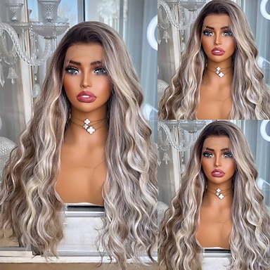 Peruca brasileira 100% cabelo humano virgem com fecho 5x5, sem cola, lace frontal 13x4, cabelo humano ondulado com mechas loiras acinzentadas e baby hair, linha capilar natural, sem cola, para