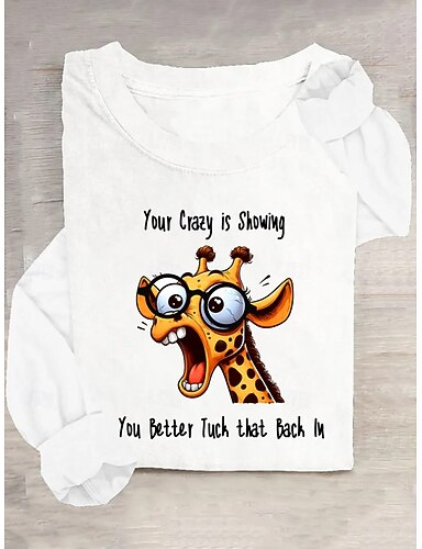 Mulheres Camiseta Imprimir Gráfico Animal Girafa Vintage Moda à moda Manga Curta Manga Longa Gola Redonda Decote Redondo Tops regulares Diário Final de semana Azul Preto Branco Rosa Cáqui Verão