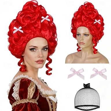 Perucas vintage vitorianas para mulheres com 2 presilhas de laço, peruca rococó volumosa, peruca barroca colonial renascentista, fantasia para cosplay, touca de cabelo