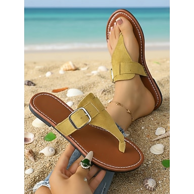 Sandálias rasteiras casuais femininas de bico aberto, ideais para o verão, viagens, atividades ao ar livre e conforto no dia a dia.