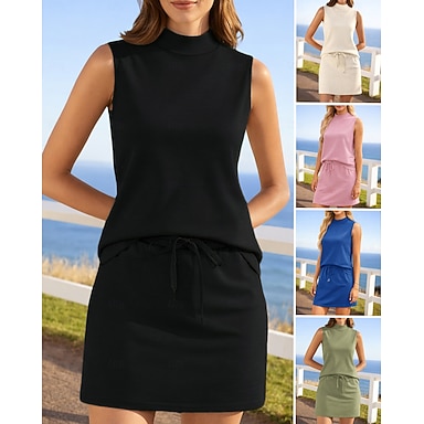 Mulheres Cor Sólida Topo da trilha Camiseta de Corrida Tanque Top de esportes Verão Curto Algemado Sem Manga Roupa Esportiva Umidade do pavio Tênis Golfe Corrida Adamascado Preto Branco Roupa de