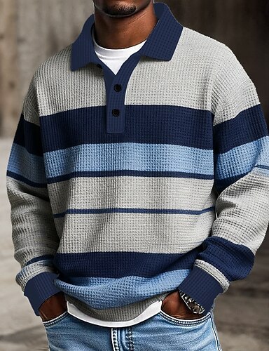 Homens Tiras Horizontais Camisas Polo Waffle Pólo Rúgbi Camisas Polo de Rugby Manga Longa Camisas polo Lapela Roupa de Esporte Casual Escola Roupa Esportiva Roupa Diária Impressão 3D Primavera Outono