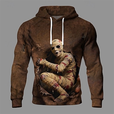 Homens Fantasma 3D Moletom Punk Exagerado Góticas Casual Manga Longa Gola Redonda Com Capuz Bandagem Streetwear Vermelho Azul Verde Com Cordão Outono Inverno Designer S M L XL XXL XXXL