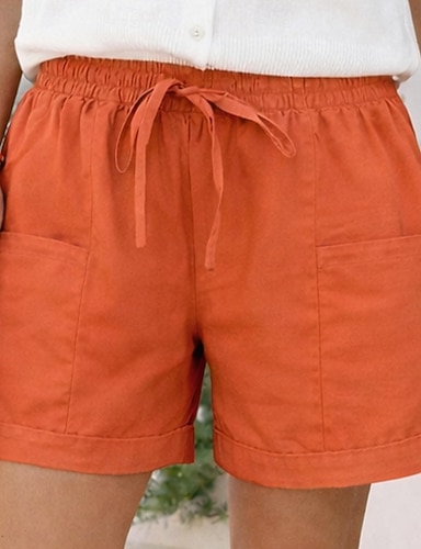 Mulheres Linho de algodão sintético Calção Shorts de verão Shorts de praia Férias Moda Casual Diário Curto Cintura Alta Côr Sólida Tecido Com Cordão Bolsos Cintura elástica Conforto Macio Respirável