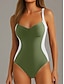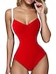 Maiô de Uma Peça Feminino Slimming Sexy Cutout Monokini Controle de Barriga Cintura Alta Slim Costas Nuas Roupas de Praia para Férias Cor Sólida Decote em V Sem Mangas