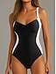 Maiô Feminino de Uma Peça Efeito Emagrecido Efeito Plissado Colorblock Monokini Corte Alto Controle de Barriga Cintura Alta Slim Costas Nua Roupas de Praia para Férias Gráfico Vintage Decote em V Sem
