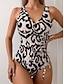 Maiô Feminino 1 Peça Monokini Slimming Colorblock Alta Corte Controle de Barriga Slim Costas Nuas Roupas de Praia para Férias Vintage Floral Gráfico Decote U Sem Mangas