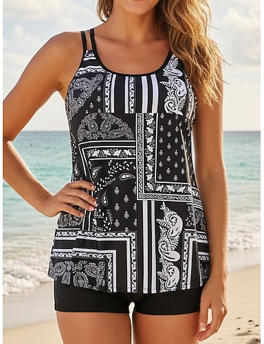 Tankini Feminino de 2 Peças Maiô Palma Alta Sem Costas Férias Praia Vestuário Gráfico Geométrico U Decote Sem Mangas