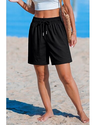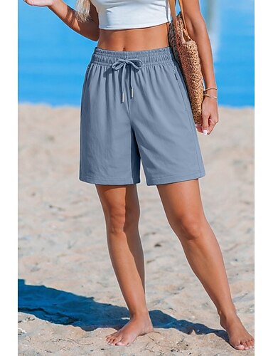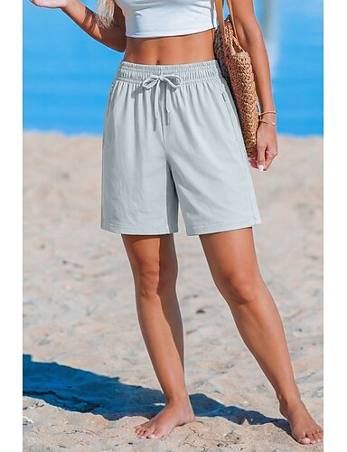 Mulheres Calção Shorts de verão Shorts casuais Férias Moda Casual Diário Curto Cintura Média Côr Sólida Tecido Com Cordão Bolsos Cintura elástica Conforto Secagem Rápida Macio Com Stretch Streetwear