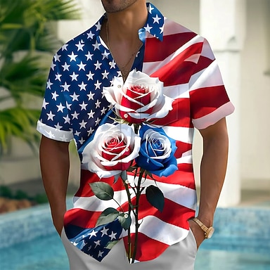 Dia da Independência Homens American US Flag 4 de julho - 250º aniversário dos EUA Patriótico Camisa Social camisa de verão camisa de botão Manga Curta Moda Casual Feriado Verão Primavera Aberto para