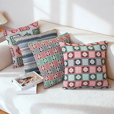 Capa de Almofadas Decorativas Geométricas Ocidentais Vintage 1PC Macia Quadrada para Sofá para Quarto Sala de Estar Capa de Travesseiro