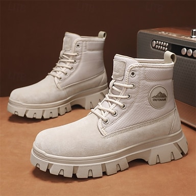 Botas masculinas de camurça bege com cadarço e sola robusta vintage – botas confortáveis para atividades ao ar livre, casuais e de trabalho