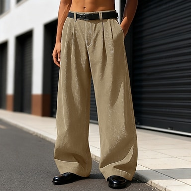 Homens Calças Social Calças de Veludo Calças largas Bolso frontal Tecido Conforto Comprimento total Ao ar livre Casa Festa Férias Moda Ajuste Largo Preto Cáqui Sem Elasticidade