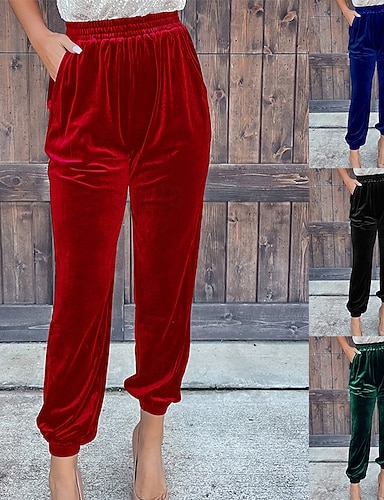 Mulheres Corredor chinês Moda Roupa de rua Comprimento total Cintura Alta Tecido Bolsos Corte alto Confortável Macio Micro-Elástica Ao ar livre Rua Azul Preto Claro Preto Rosa Verde Primavera & Outono