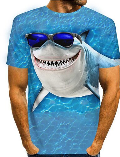 Homens Animal Tubarão Estampas Abstratas Camisa Social Camiseta Camisetas Manga Curta Camiseta Impressão 3D Decote Redondo Camisa Designer Casual Grande e Alto Diário Feriado Azul Verão Roupa S M L