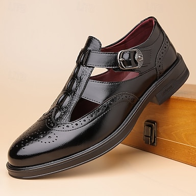 Sapatos sociais masculinos pretos e brancos com fivela, leves e confortáveis para uso diário, escritório, viagens e estilo casual elegante.