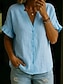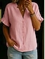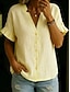 Mulheres Camisas de algodão e linho Linho de algodão sintético Frufru Botões Côr Sólida Básico Casual Manga Curta Gola Redonda Tops regulares Diário Branco Amarelo Rosa Vinho Cinzento Verão Primavera