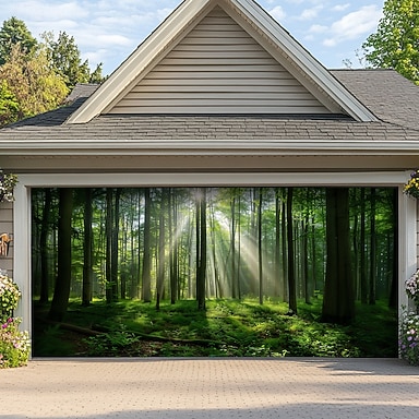 Decorações de Porta de Árvores da Floresta Paisagem Capa de Porta da Garagem Banner Exterior Grande Decoração de Fundo para Porta da Garagem de Férias Decorações de Parede para o Lar