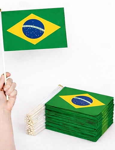 Pacote com 25 miniaturas da bandeira alemã em haste, medindo 5x8 polegadas, ideais para jogos da Copa do Mundo de Futebol, eventos esportivos, decoração de festas e para torcedores vibrarem.